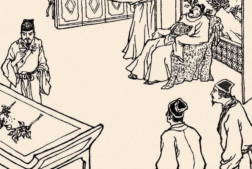 来俊臣摆威风,叉着腰狐假虎威说:“村妇听好了,我是钦差大臣,奉圣旨来请这里的何仙姑。你快找点水来解渴,若是误了事,小命不保!”