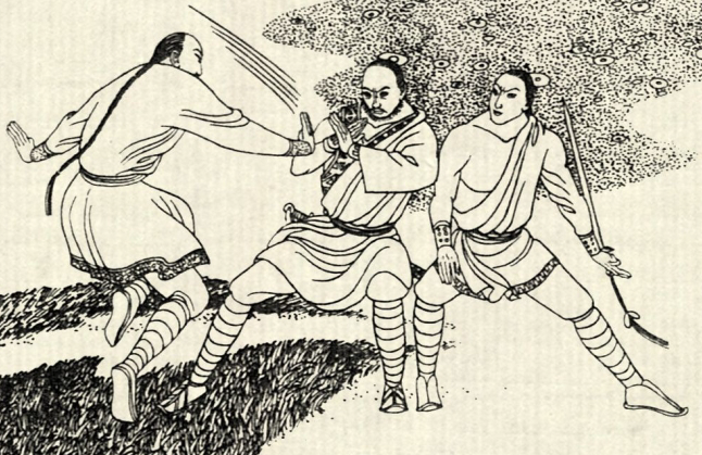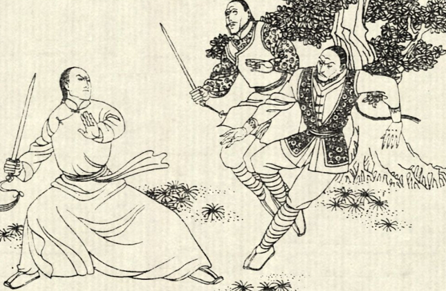 两人又往前走了一炷香的功夫,突然周围传来呼啸声,几十个蒙面人从两旁跃出,堵住了前后去路。为首之人拔刀放出狠话,交出所有钱财,饶他一命。