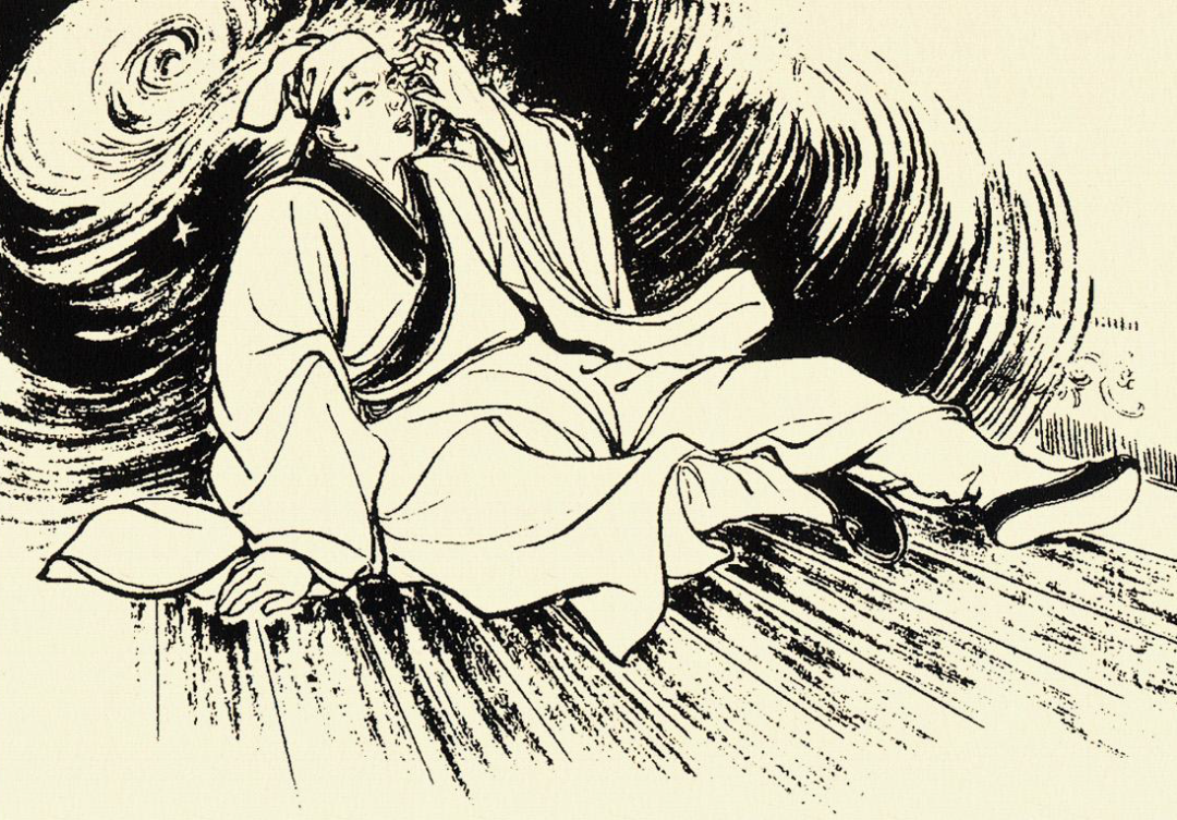 半夜时分,赵拨浪睡得正香,突然一阵大风吹开庙门。