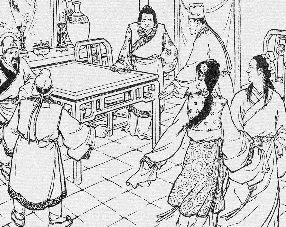 在众人面前,赵员外郑重宣布:“今天,我家小女子答字选婚,总共四个字,谁全答对了,我就把女儿嫁给谁。”