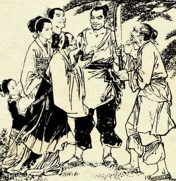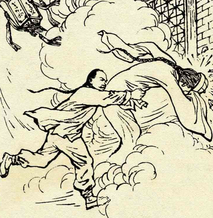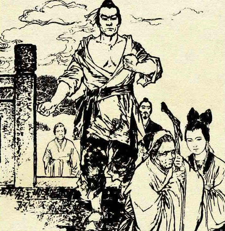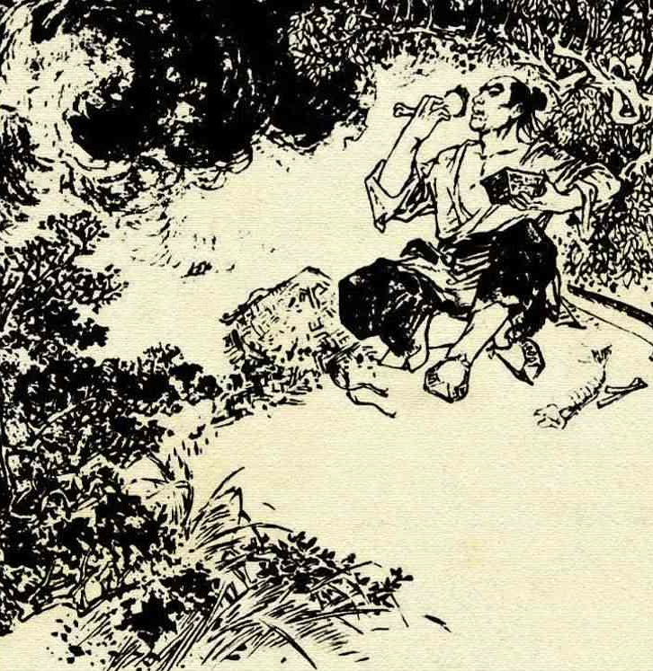 谢大胆听后连忙往后退,然而一不小心,从台阶上摔下来,正好落在一口大缸里。