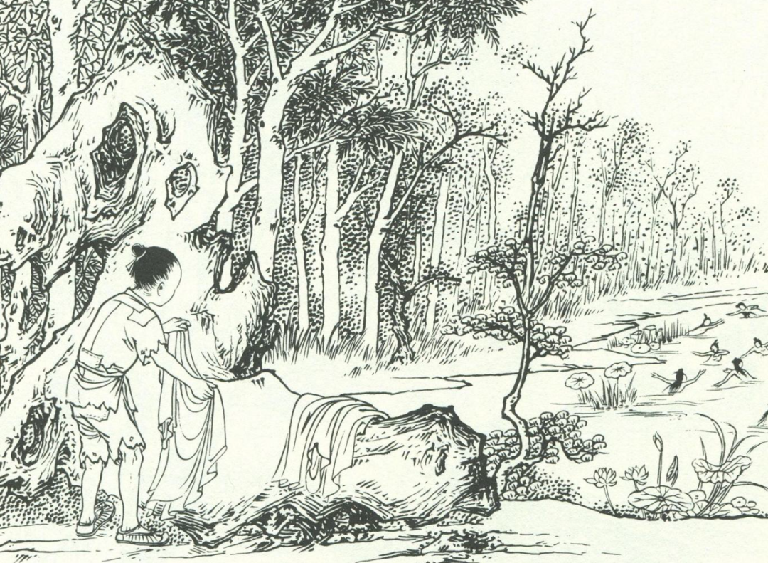 “天上的仙女会在夜里到河塘里洗澡,你把其中一个人的衣服藏起来,等其他人穿上衣服走了,留下来的那个人直接拉回家当媳妇。”