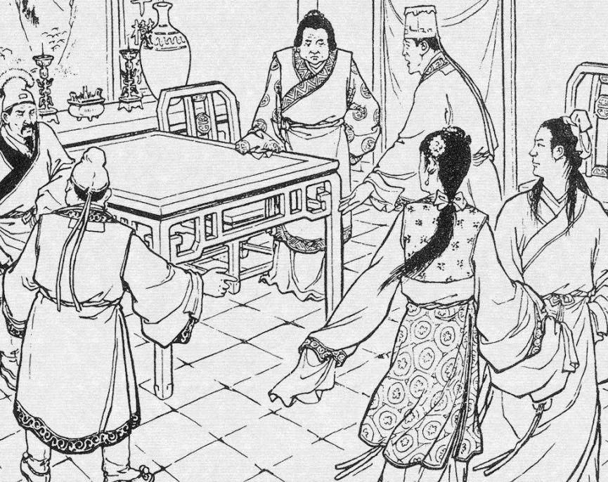 赵老汉准备了一大桌酒菜,让三个女婿落了座。然后端起酒杯说道:“虽然大家都是我的女婿,但女婿也讲究门当户对。今天大家喝酒说句子,如果答得上来,以后就还是我的亲女婿,逢年过节我开门欢迎,如果答不上来,那就别进我家门。”