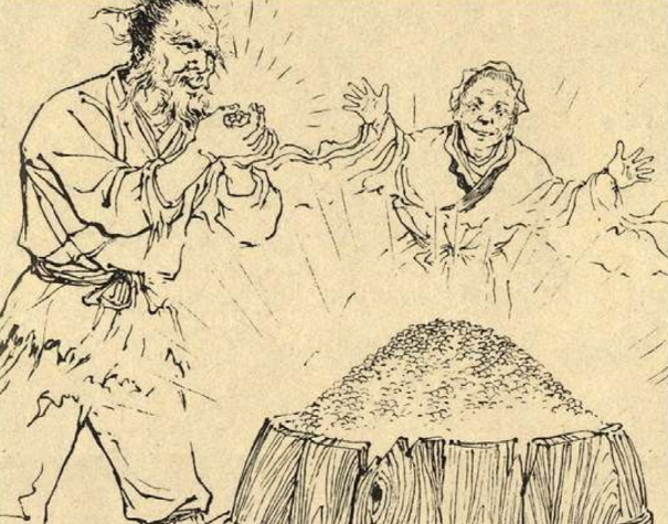 七兄弟把粮食分给了穷苦百姓,大家十分感谢他们的恩德,把这件事编成了故事四处传扬。