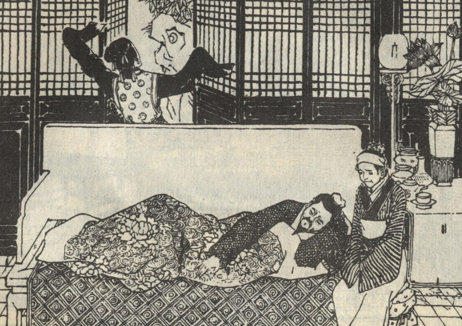 夏天炎热,梅妍在家穿着单薄,坐在阁楼上露出温玉白臂,不料正好被楼下教书的吴先生看见,顿时想入非非,起了邪念。