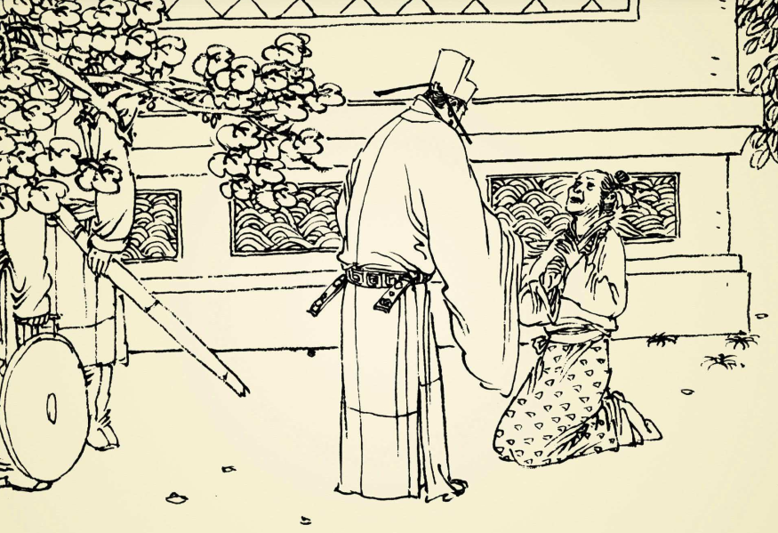 张氏跪在地上说:“大老爷在上,民女张氏冤深如海,望青天大老爷做主伸冤。”