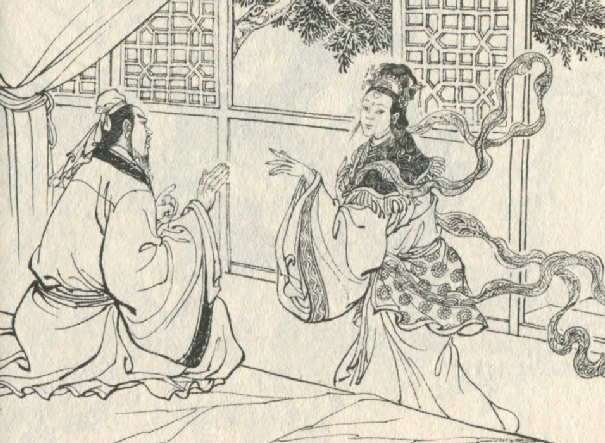祖师爷和汉江龙王有过一面之缘,不想为了这条黄龙大闹汉江,弄得两家坏了关系。于是灵机一动,再次化身美丽的打渔姑娘,在汉江摇着小船。
