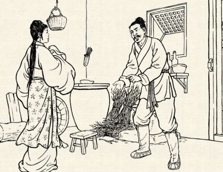 过了两天,两个痞子果然来到家里要钱。进门之后就问新媳妇:“你公爹在家吗?”
