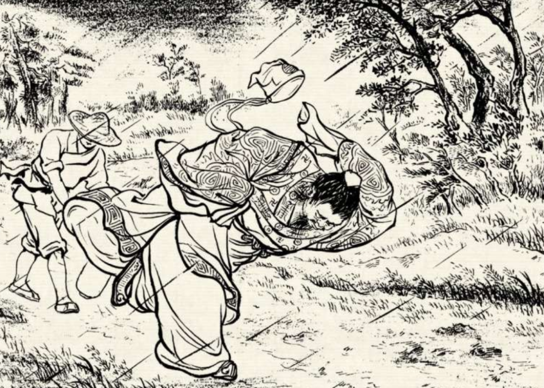 玉宝含着泪,一瘸—拐地往山里走。一天没吃饭,又挨了打,走了没多久就两眼发晕,站立不住,一个跟头翻进了深沟,昏死过去。
