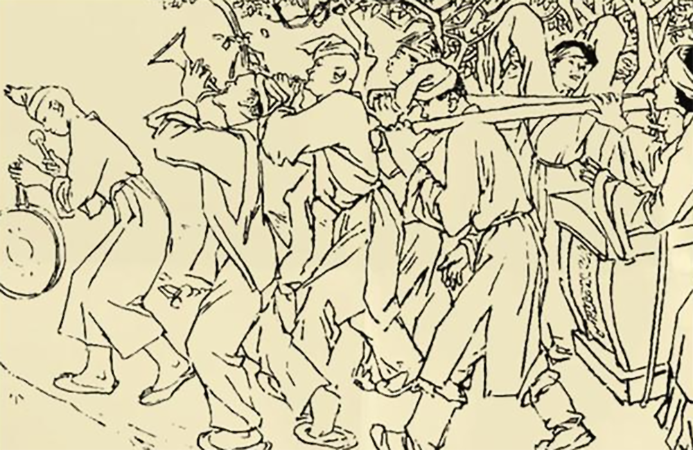 四人争来争去争不出结果,最后达成一致意见,四人都办,一家办一场,哪家办时老娘的尸体就抬到哪家。