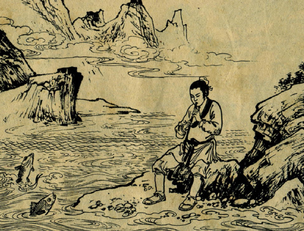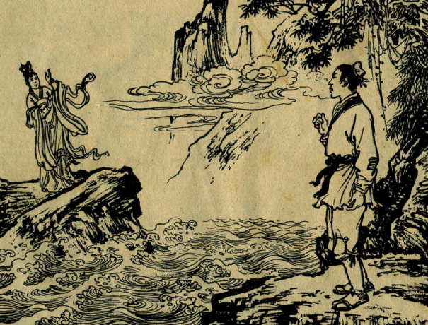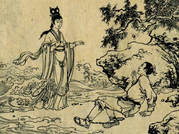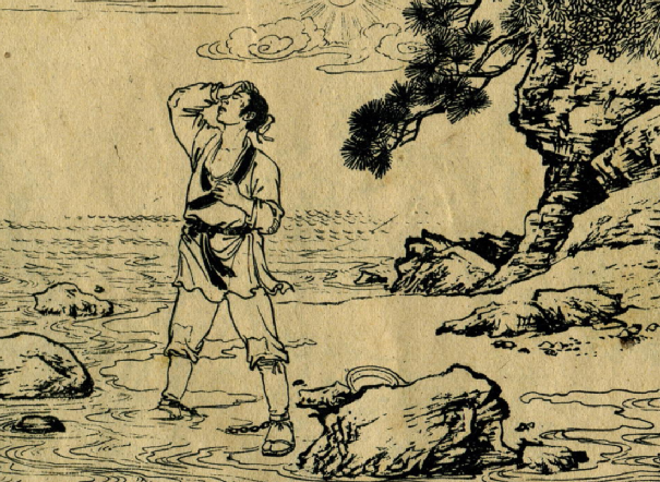 有一天,水生在河边打渔,遇见一位年轻漂亮的姑娘独自站在岸边,焦急地左右张望。