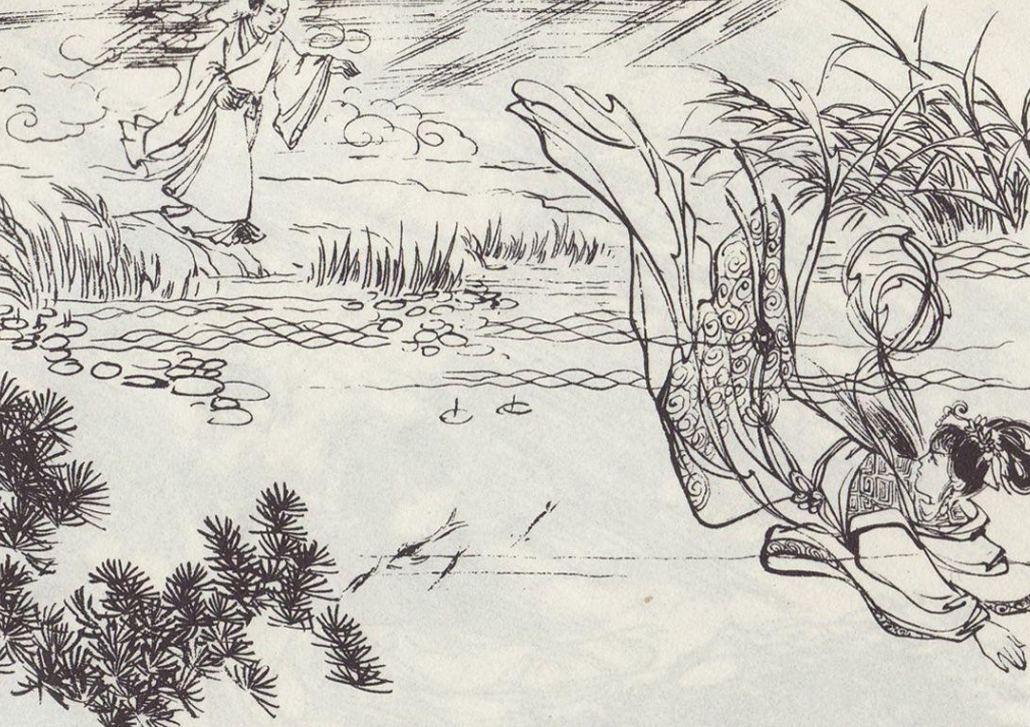 说来也奇怪,翠娘刚落入水中,就游来一个大乌龟,驮着她开辟出一条水路,朝着汉江河底游去。