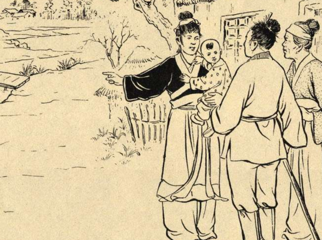 这天周大爷刚上完香,就看见远方走来一男一女,背着一个小孩。心想如果香秀不死,小孩也应该这么大了。想到这里,不觉老泪纵横,掩面哭泣。
