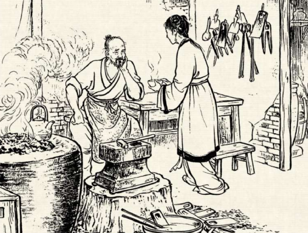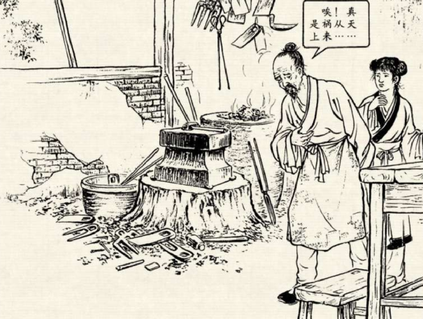 侯铁匠看看天,又看了看惊慌无措的民众,一咬牙一跺脚,对亲生女儿小翠说道:“姑娘呀,不是爹爹狠心,而是万不得已呀。古人说欲炼神器,必以人祭。今日为了汉江百姓,只有委屈你祭炉了。”