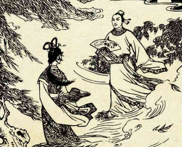 走到半路上,牛小明看见一个俊美的姑娘正在河边取水。