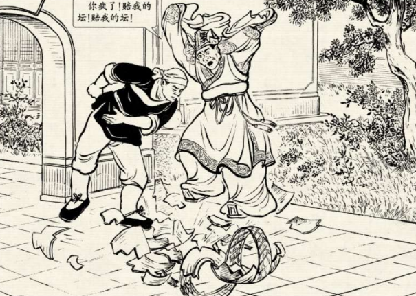 张扒皮气得跺脚,说:“你怎么将缸都打碎了,我不但不给你工钱,你还要赔我的大缸。”