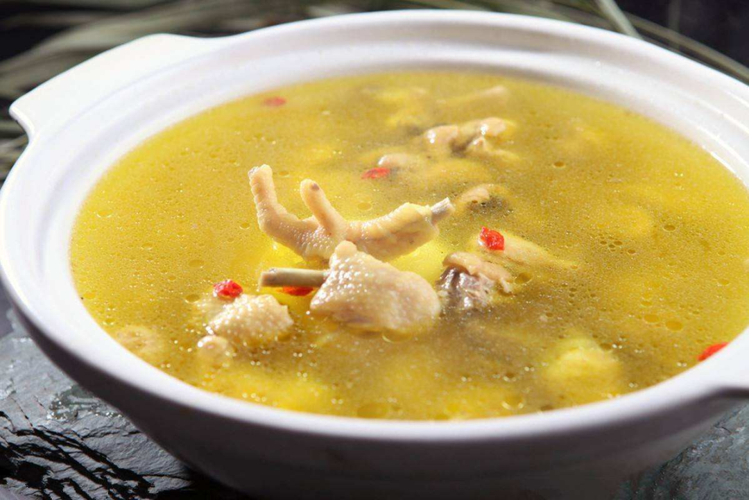 席上刚上了一罐鸡汤,热气腾腾,鸡肉都在下面。老丈人按照顺序给两个女婿“拈菜”。