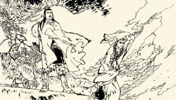 道士又跳到另一堆柴火,和刚才一样,把燃烧的柴火扔向女鬼。来回几次之后,女鬼在一声不甘心地哀叹之后,化为乌有。