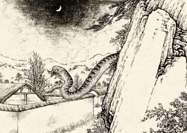 果不出其然,蟒蛇精没法遁走,只能拖着沉重的身子缓缓爬出大院。