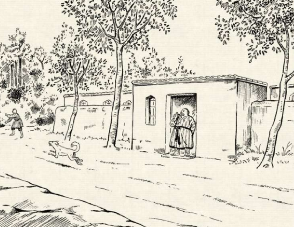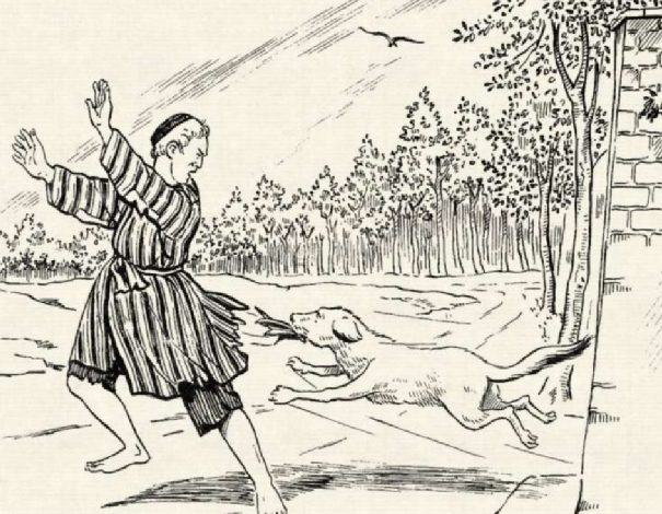 主人和赌徒见打不着狗,早已急得双眼充血,气得头发昏,他们一个个扬起镐,挥起锹,在屋里挖来挖去。