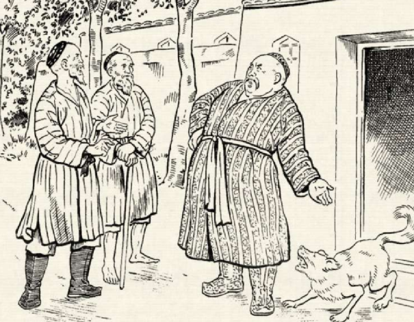 为了得到更多的金子,主人将金狗的秘密告诉了众赌徒,带着刀枪棍棒,准备将金狗打死分赃。