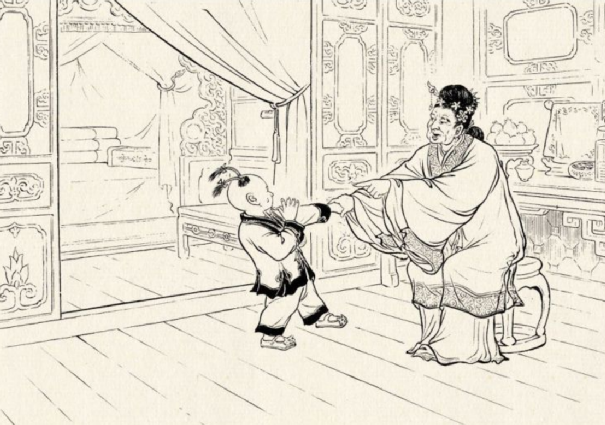 老二媳妇为人忠厚,不知老大媳妇的坏心眼,也没多想,就抱着儿子到大嫂房里去串门。