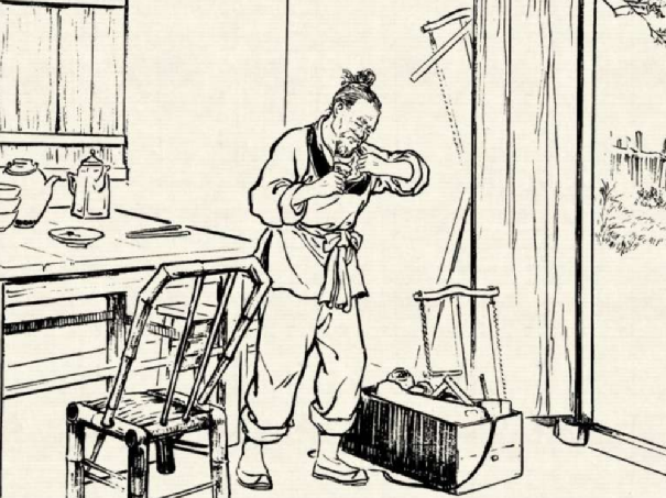 老木匠的邻居是一个阴阳先生,一言不发地听他说完。