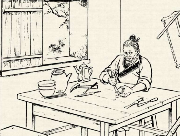 就这样,老木匠使出了看家的本领,灌注了全部心血,只要一有空就坐在那里雕刻,用了九九八十一天,终于按照妻子二十岁的模样,雕刻出一尊完美无瑕的木像。