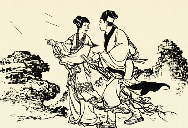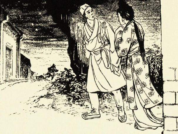 一名青衣男子骑马而来,见女子哭得悲惨哀切,不禁动了恻隐之心,下马问道: