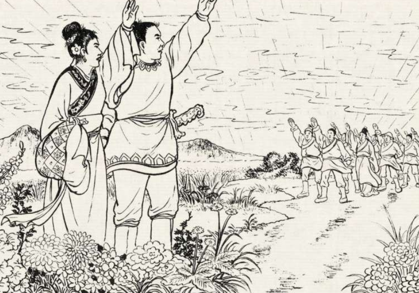 这天一大早,翠兰上山采花,可一直到晚上也没回家。王氏左等右等没看见女儿,哭得如同泪人,一边找一边喊翠兰的名字,可不管走到哪,大家都摇头,表示没有见过。