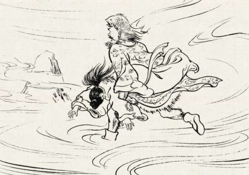 翠兰忙说:“快藏起来,老猴回来了,它看见你,一定会把你吃了!”说着把王恩藏到水缸里。