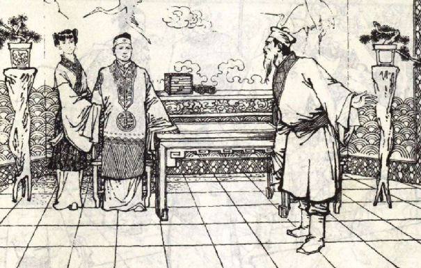 没过多久,一个人背着一个口袋走过来,愿意用自己的口袋换金碗银筷。