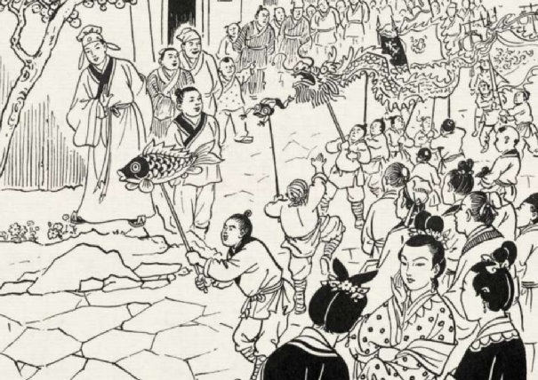 到了二月二,玉帝不放心,又往人间看了一眼,发现大火已经烧到了院子里,人们围着火堆大喊大叫,又高兴得眉飞色舞。