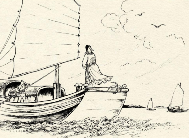 只见一户人家只有几间茅屋,一个年迈古稀的老婆婆正点着一盏油灯,坐在门口喃喃自语,祭奠死去的丈夫。