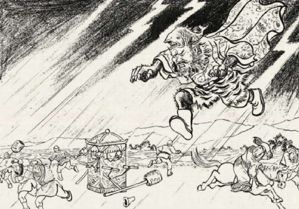 可谁知,就是一眨眼的工夫,桃花仙子拿起一块红布,反手就扔了出去。这块红布化为一团烈火,烧得狗熊精睁不开眼,嗷嗷乱叫跌下云头,转眼不见踪影。