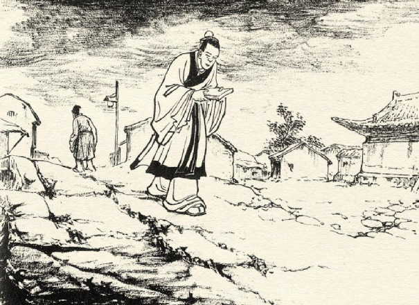 这时,大槐树后突然冒出一个老头,两鬓斑白,身穿一身破烂的棉衣,佝偻着腰,止不住发抖,一副又冷又饿的样子。