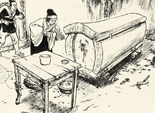 陈地让家人对外宣称自己已经暴毙,悄悄拉到后山埋掉,不过切记,棺材盖千万别盖紧,一定要留一条缝,而且不要埋得太深。说完就躺在床上,转眼身体冰凉,没有了呼吸。