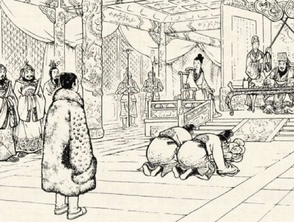 木匠躲在家里,足不出户,把自己养得白白胖胖,这才换上最为贵重的丝绸衣服,大摇大摆来到皇宫,跪在地上,同样传达先皇的谕旨。