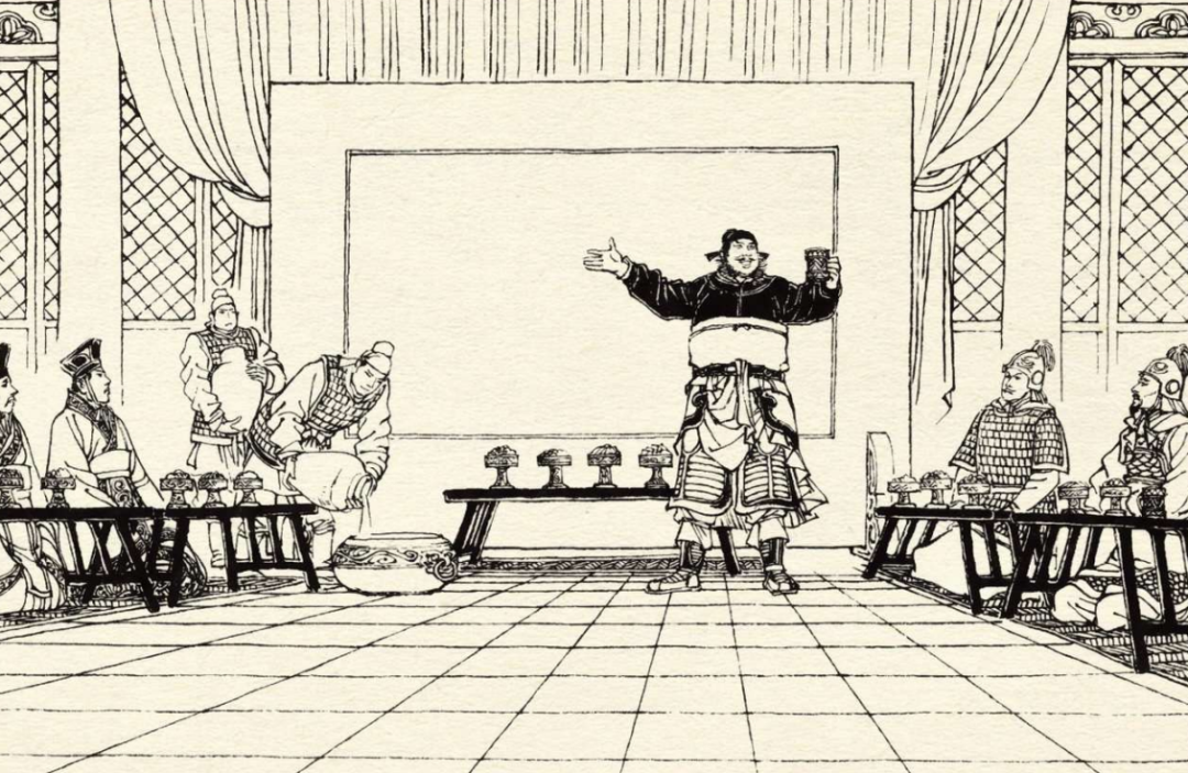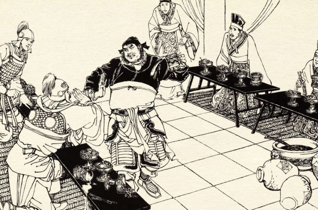 话说张飞此时见酒宴迟迟未开,心中非常焦躁,冷视曹操。