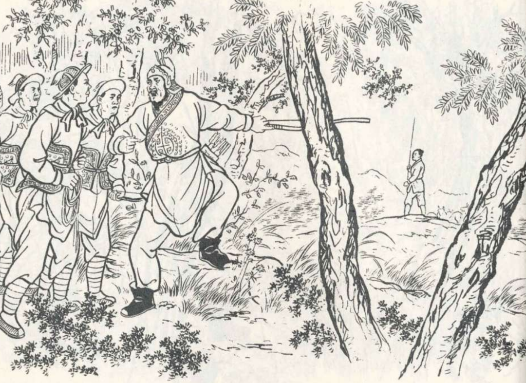 为了赶走老三,老大、老二商量了一个恶毒的主意。花钱找了一个神箭手,请他暗中埋伏在树上,射杀不忠不孝的老三。