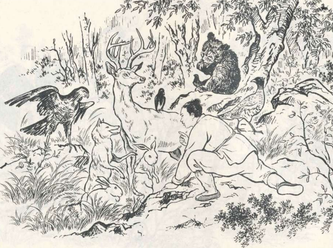 神箭手就带着哥儿仨到那户人家了。门口的恶犬冲着老大、老二龇牙咧嘴,对着老三摇尾巴。