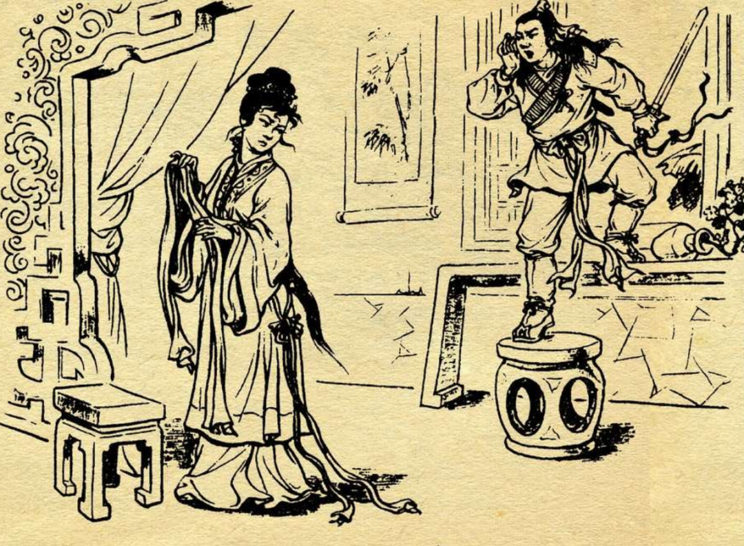 嫂子听到喊声,立刻慌慌张张跑了过来,左右张望。后面还跟着一个相貌丑陋的汉子,身材魁梧雄伟,敞开衣襟,露出三寸来长的虬曲护心毛,哇哇乱叫。