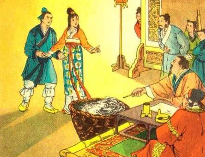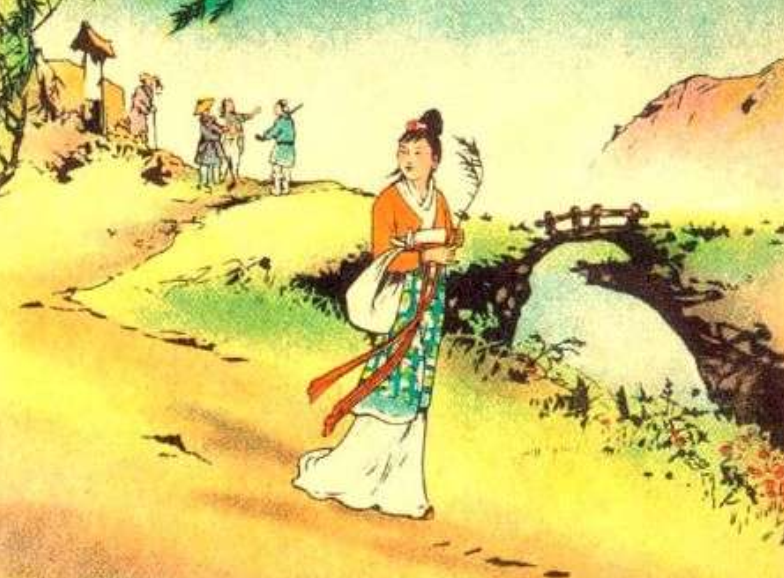 女子款款施礼,表示十分敬佩董永卖奴葬父的孝心,想必一定是个正人君子,而自己公婆父母早已去世,丈夫又亡故,愿意和他结为夫妇。
