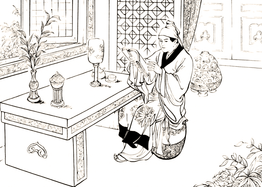 吕洞宾视而不见,继续大吃大喝,等到半夜时分,所有人都离去,这才歪歪倒倒走进婚房,也不理会新娘子,一个人坐在桌前默默无语,捧着一本书看得津津有味。