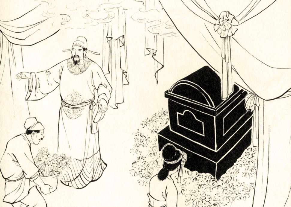 吕洞宾哭笑不得,将棺盖揭起,只见里面装着全是金银,上面放着一张纸,写着这么一首诗。