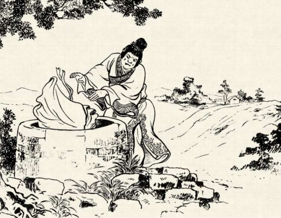 换好衣服后,大姐拉着小妹来到井边,趁她一个不留神,把她推到了井里。