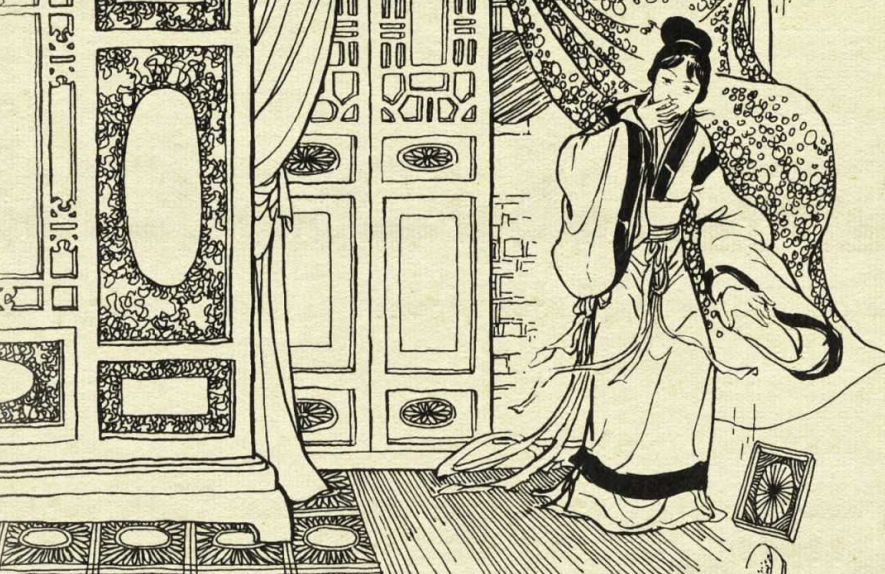 到了晚上,王大拿悄悄来到绣楼下,看到楼上虽然没点灯,但窗户开了半面,翠莲靠着窗边,好像是在等人。