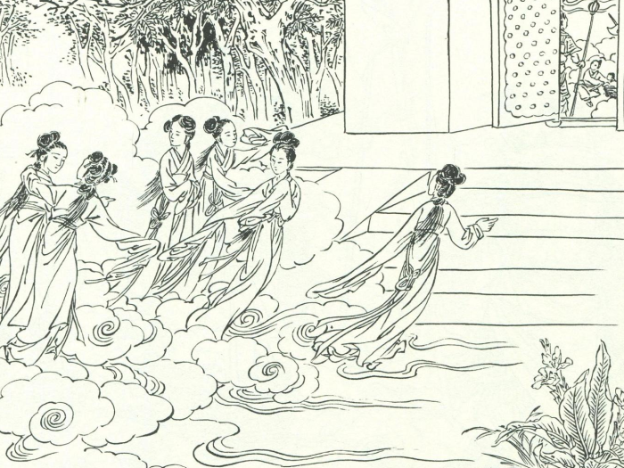 在民间传说中,天上的仙女时常偷下凡间,在风景秀丽的地方,找一潭池水沐浴。最后衣服被凡人偷走,引出了一段绮丽的人仙爱情故事。