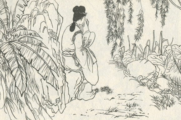 就在这时,走来一个妙龄女子,挑着两只满满当当的水桶,看张全可怜,就从桶里舀了一瓢,喂给了张全。