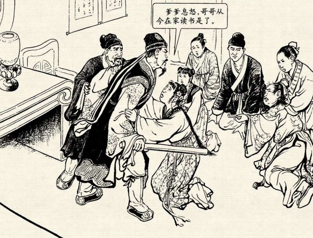 说着,张员外抄起一根大棒,冲进了儿子的屋子,一顿劈头盖脸地痛骂。